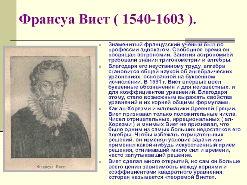 Слайд 13Франсуа Виет ( 1540-1603 ).