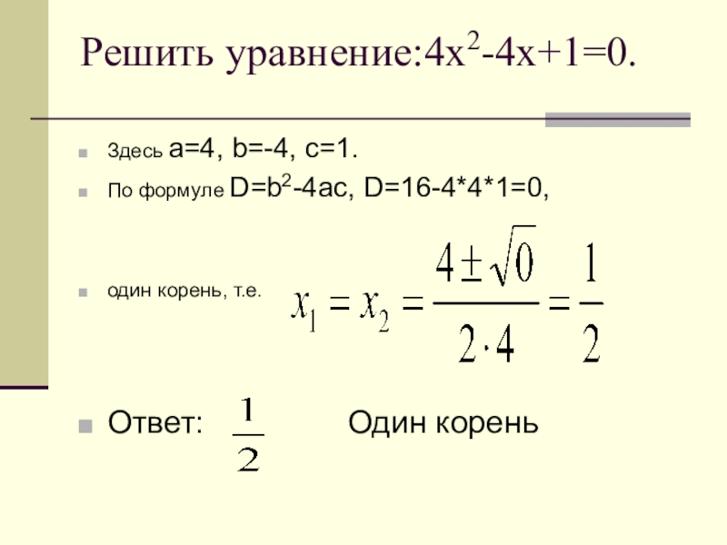 1-2х+4х2= х2-2х+1 х=0 неполное