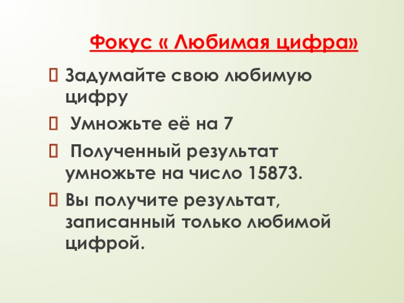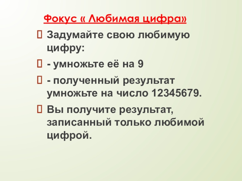 Слайд 25Фокус « Любимая цифра»