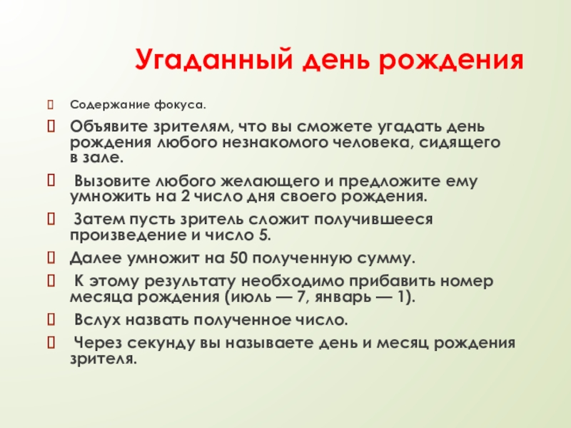 Слайд 16 Угаданный день рождения
