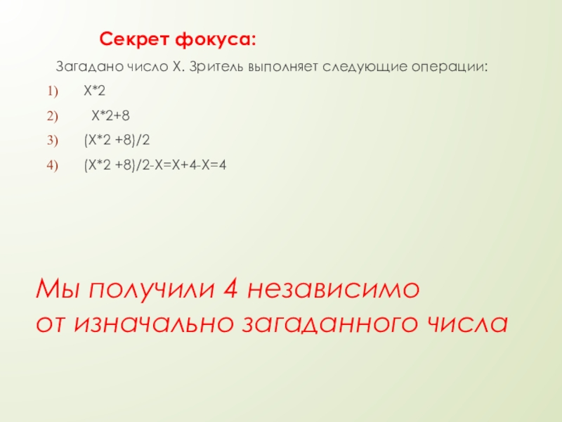 Слайд 9Мы получили 4 независимо от изначально загаданного числа
