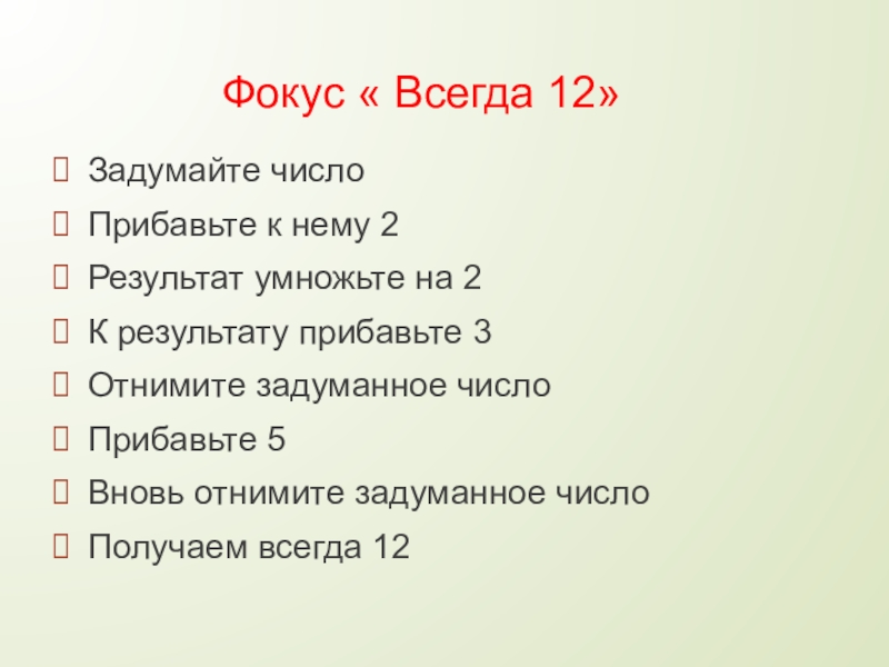 Слайд 10 Фокус « Всегда 12»