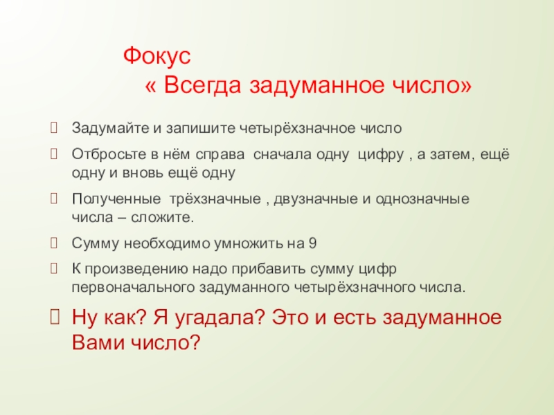 Ну как? Я угадала? Это и есть задуманное Вами число?