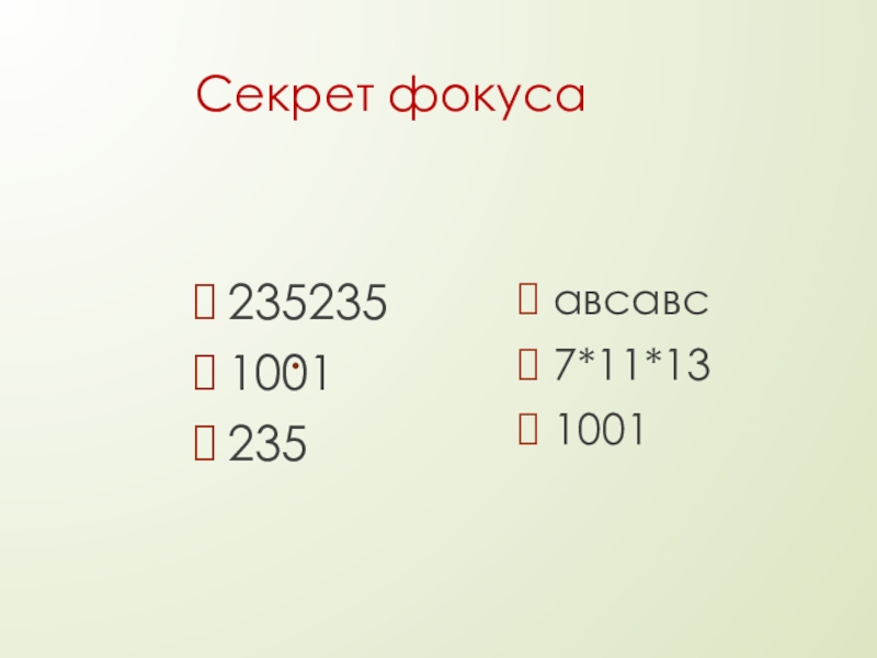 Слайд 13Секрет фокуса