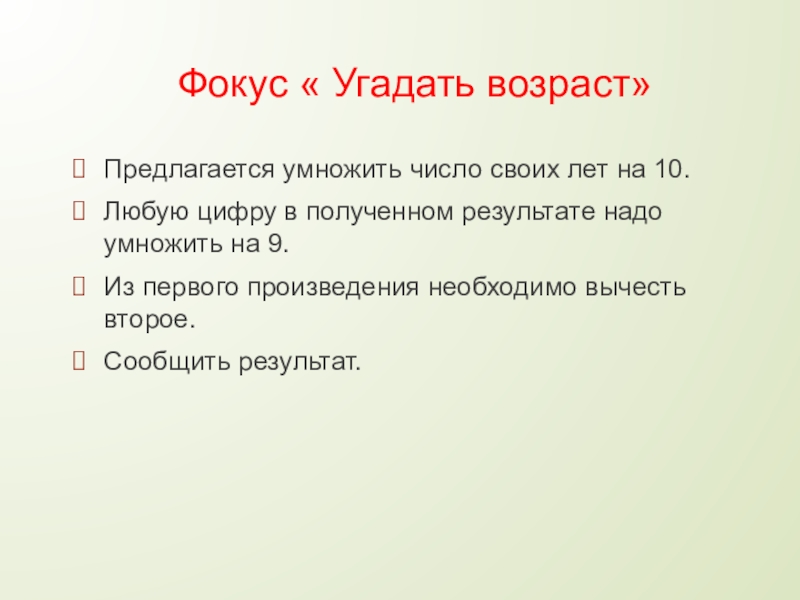 Слайд 14Фокус « Угадать возраст»