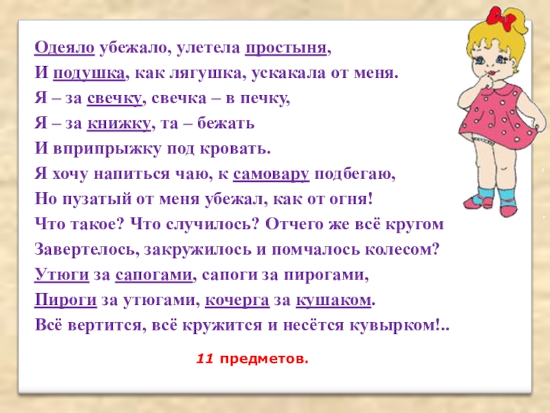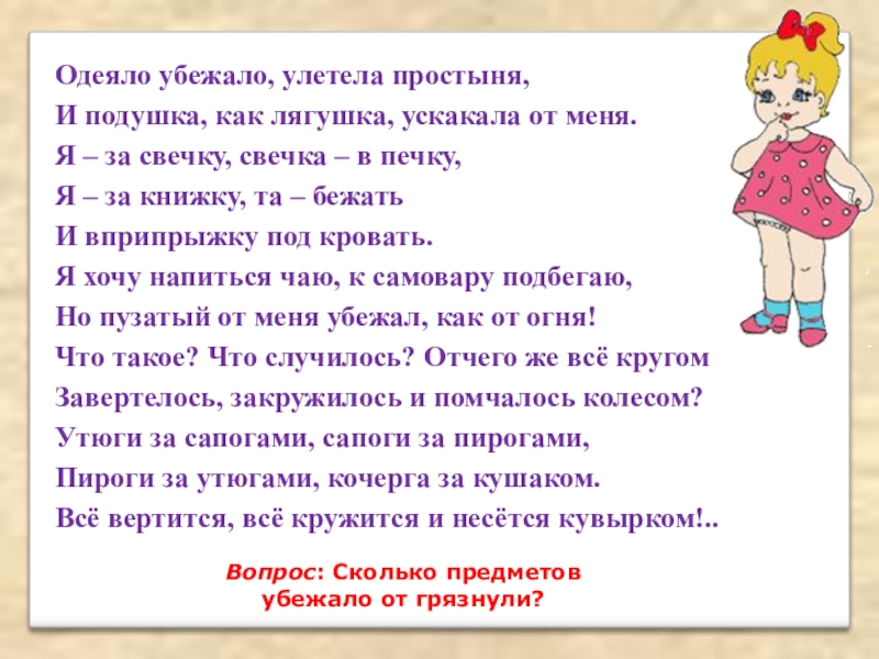 Вопрос: Сколько предметов убежало от грязнули?