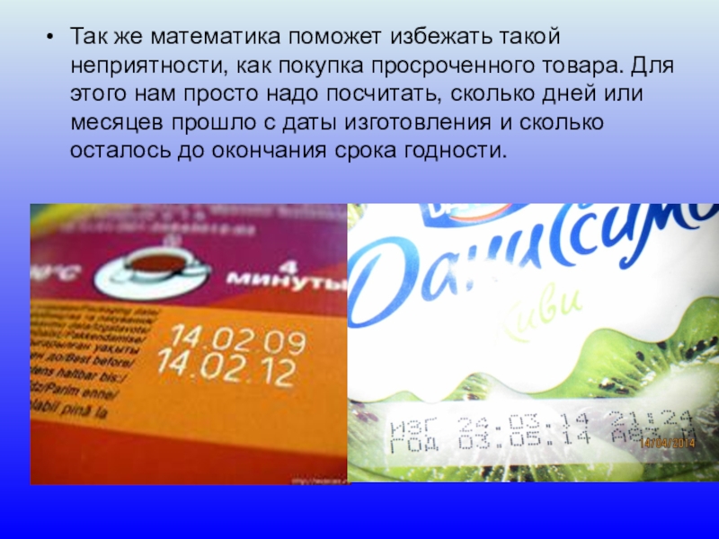 Так же математика поможет избежать такой неприятности, как покупка просроченного товара.