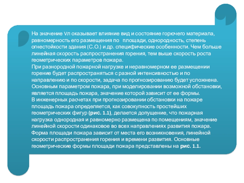 Слайд 11На значение Vл оказывает влияние вид и состояние горючего материала, равномерность его