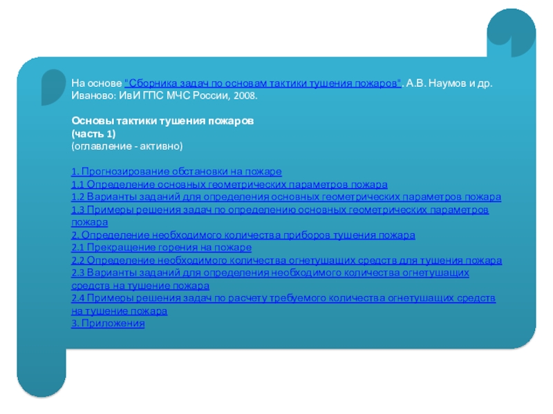 Слайд 7На основе "Сборника задач по основам тактики тушения пожаров". А.В. Наумов и