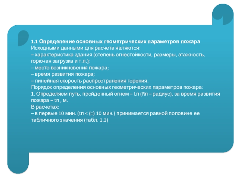 Слайд 131.1 Определение основных геометрических параметров пожара