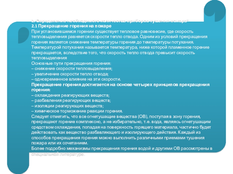 Более подробно механизмы прекращения горения водой и другими ОВ рассмотрены в специальной литературе.