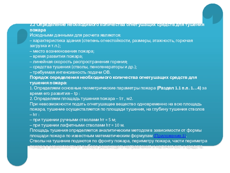 Слайд 192. Определение необходимого количества приборов тушения пожара"