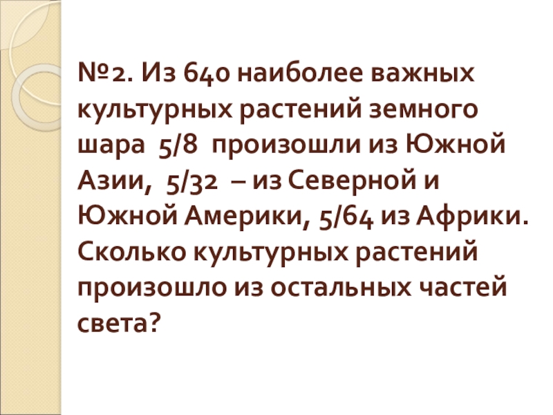 Слайд 8№2. Из 640 наиболее важных культурных растений земного шара 5/8 произошли