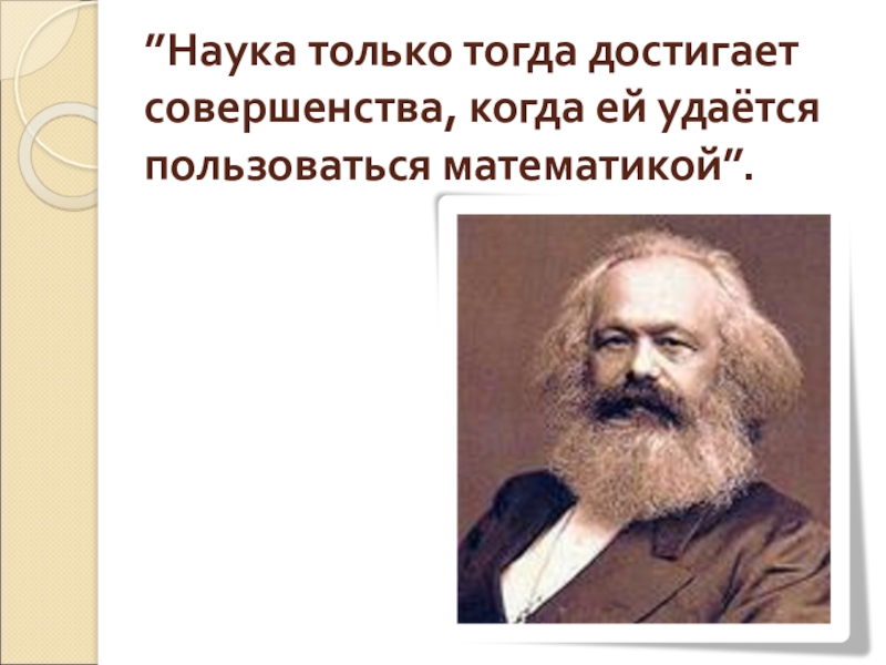 Слайд 3”Наука только тогда достигает совершенства, когда ей удаётся пользоваться математикой”.