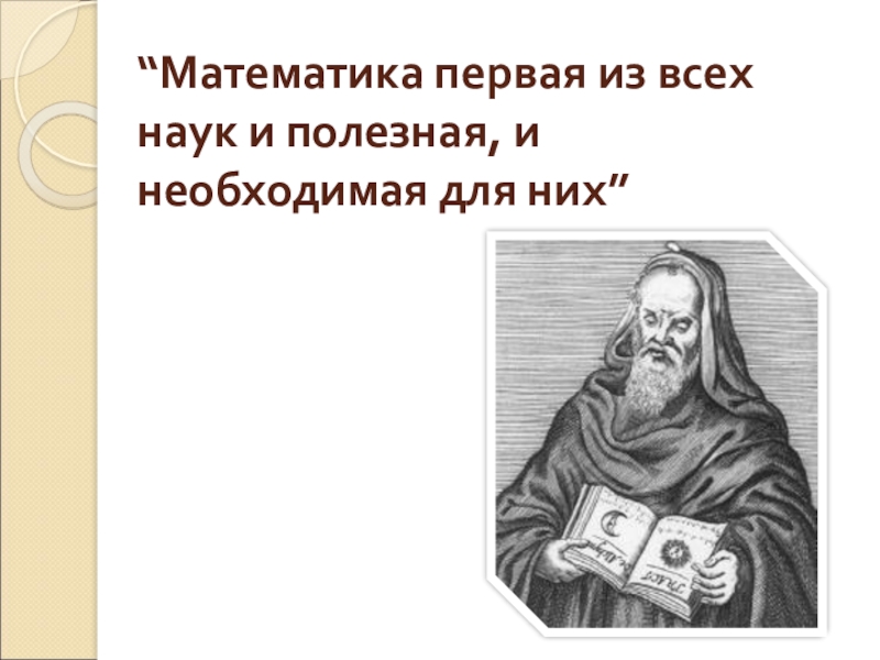 Слайд 2“Математика первая из всех наук и полезная, и необходимая для них”