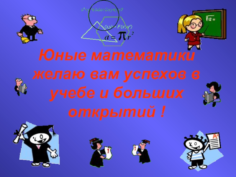 Юные математики желаю вам успехов в учебе и больших открытий !