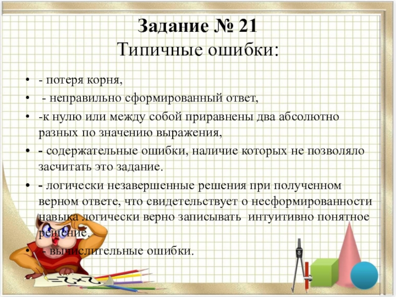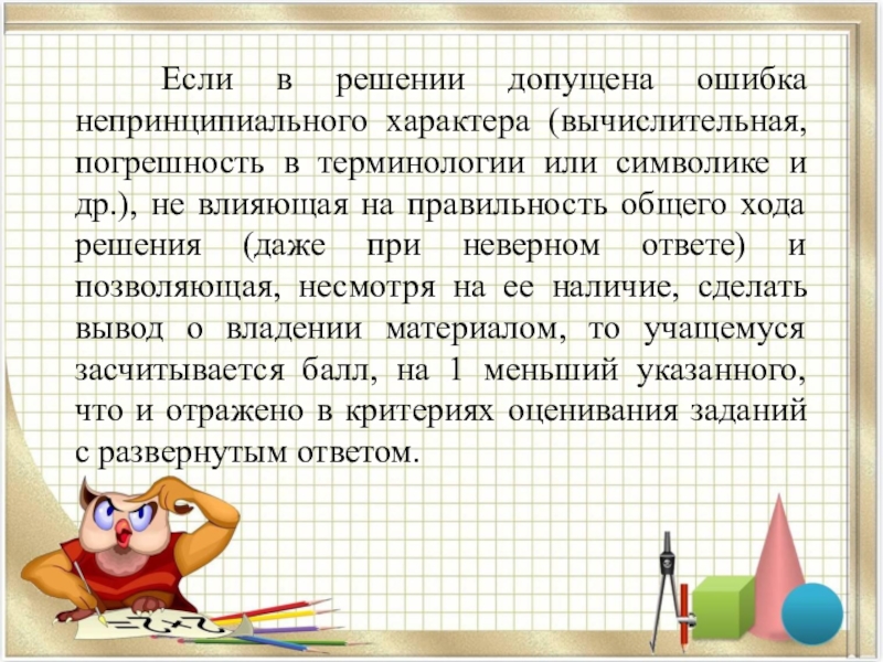 Слайд 21 Если в решении допущена ошибка непринципиального характера (вычислительная, погрешность в