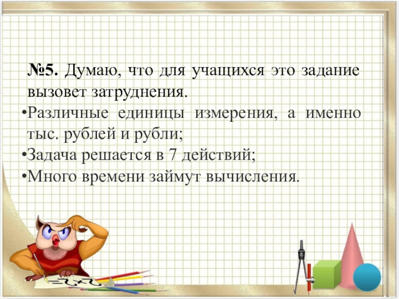 Слайд 16№5. Думаю, что для учащихся это задание вызовет затруднения.