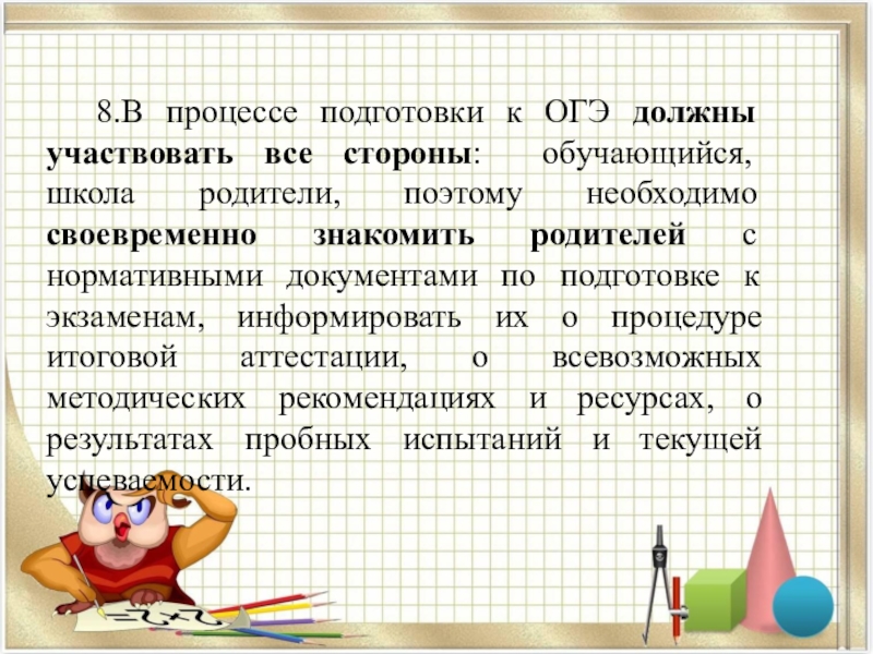 Слайд 41 8.В процессе подготовки к ОГЭ должны участвовать все стороны: обучающийся,