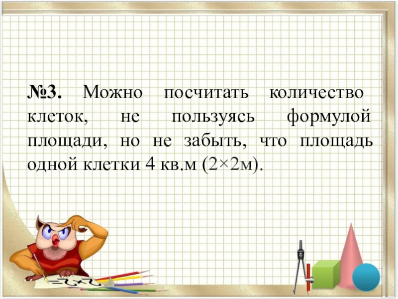 Слайд 12№3. Можно посчитать количество клеток, не пользуясь формулой площади, но не