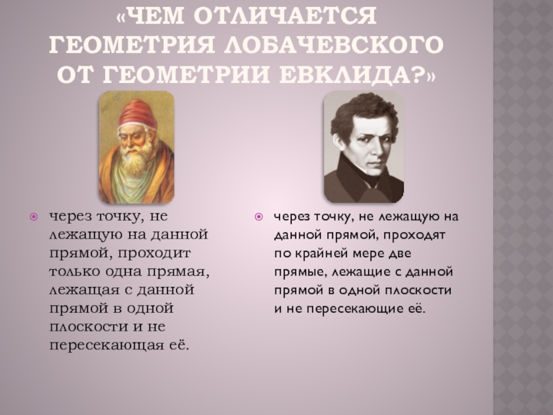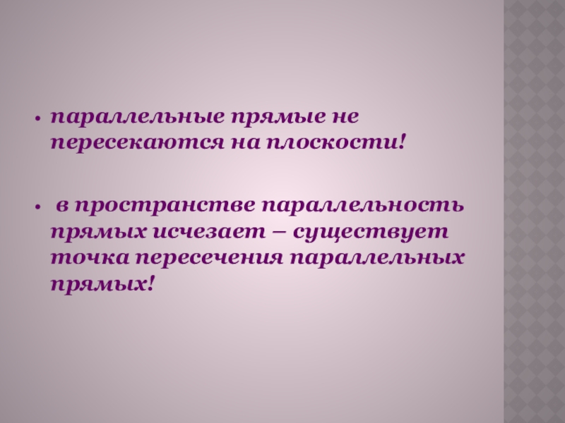через точку, не лежащую на данной прямой, проходят по крайней мере две прямые, лежащие с данной прямой в одной плоскости и не пересекающие её.