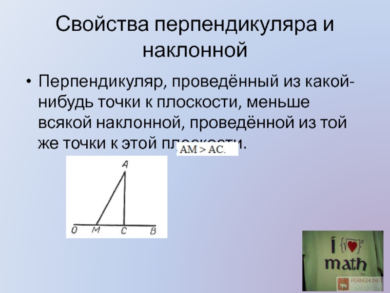 Презентация, доклад по теме Перпендикуляр и наклонная