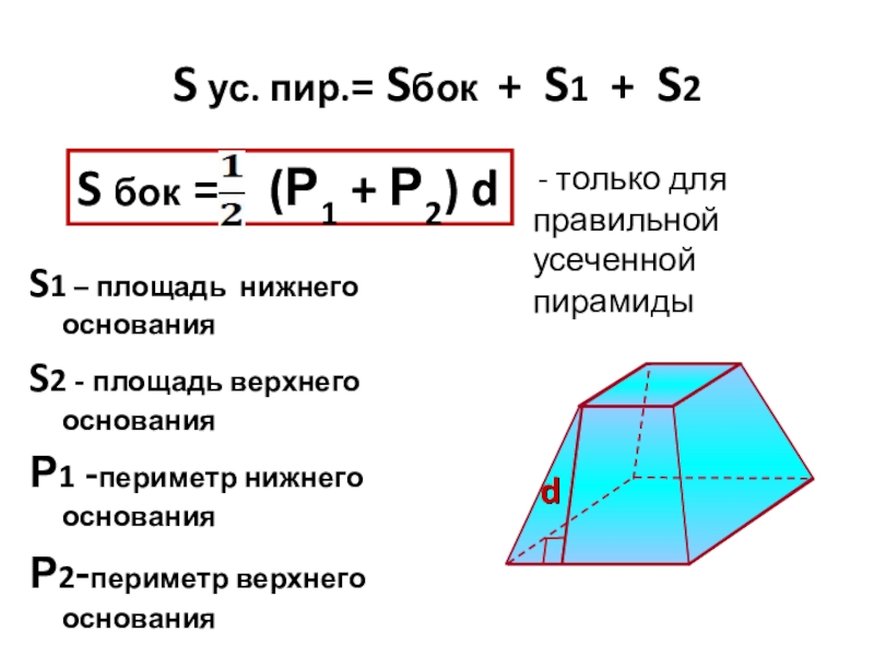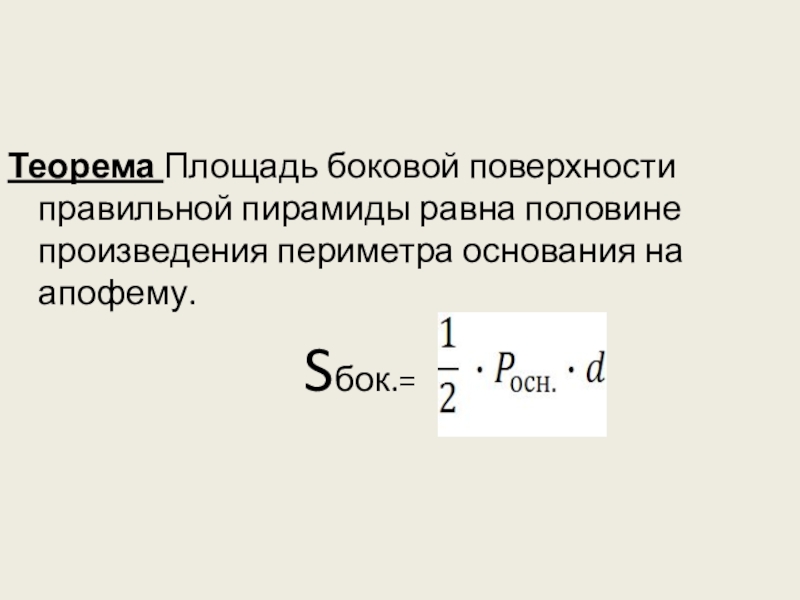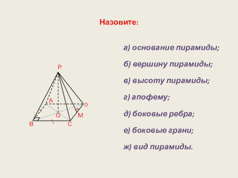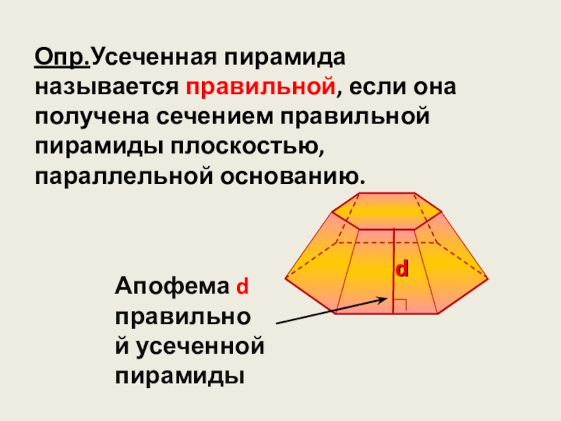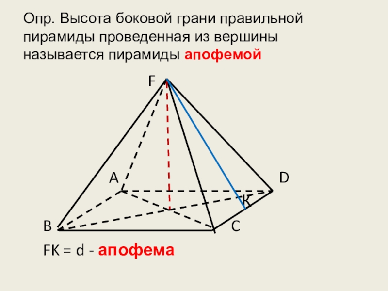 Опр . Пирамида называется правильной , если ее основание – правильный многоугольник, а отрезок, соединяющий вершину пирамиды с центром основания, является ее высотой.