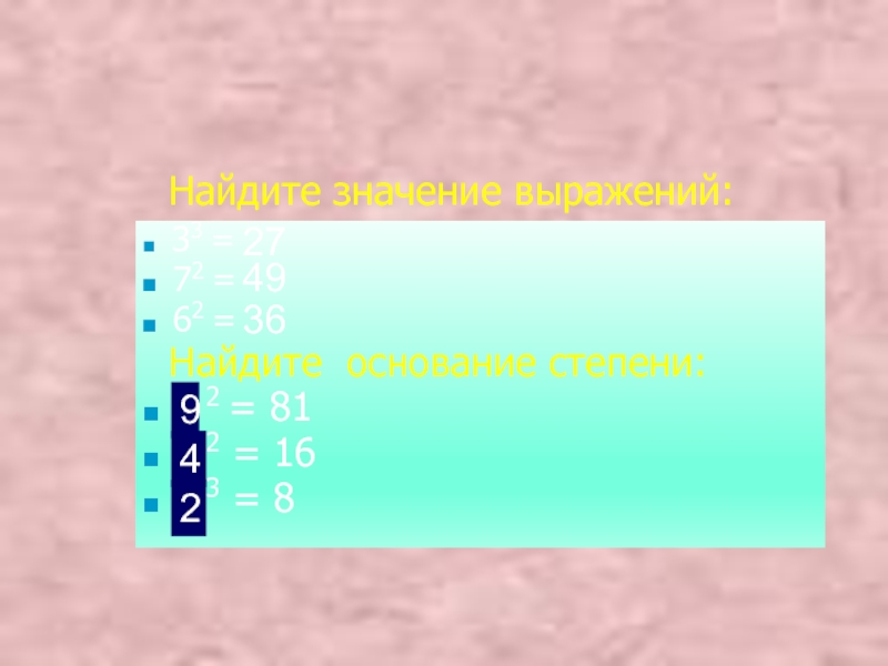 Найдите основание степени:
