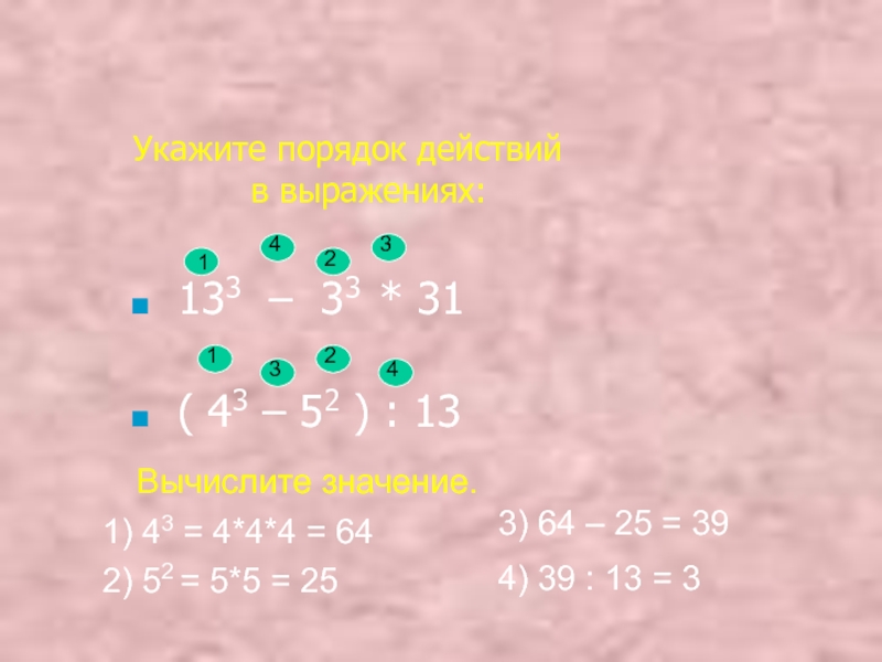 3) 64 – 25 = 39