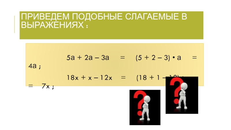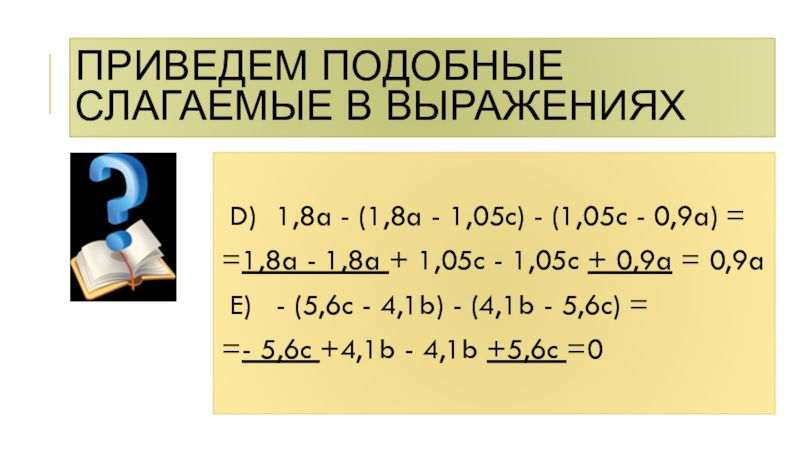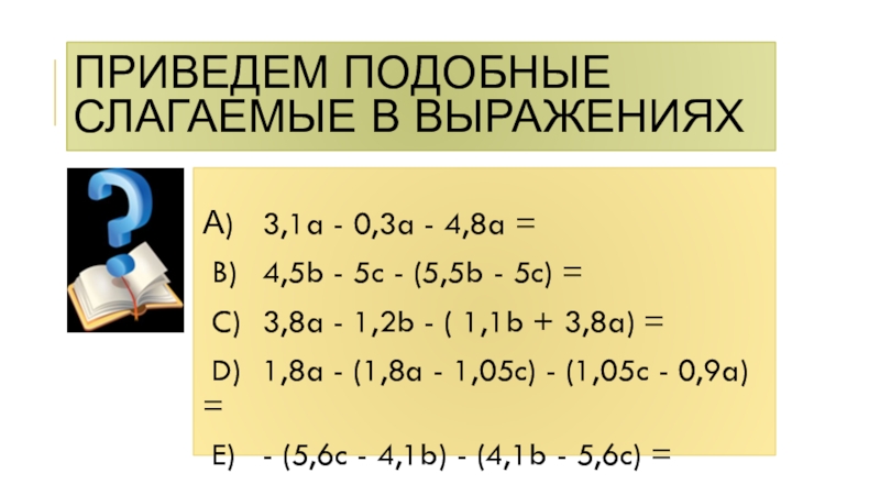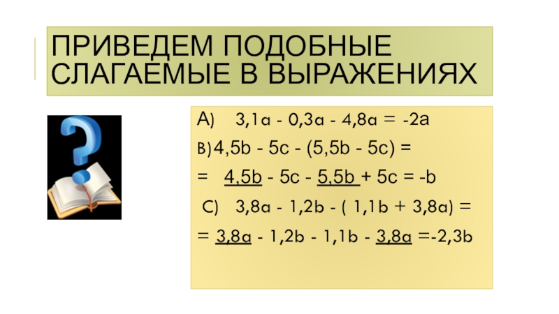 Слайд 4Приведем подобные слагаемые в выражениях :