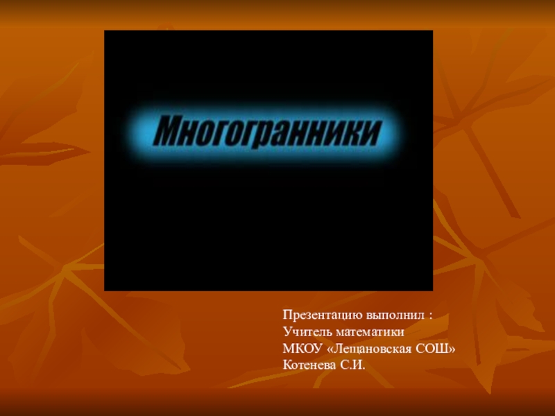 Презентацию выполнил :Учитель математики МКОУ «Лещановская СОШ»Котенева С.И.