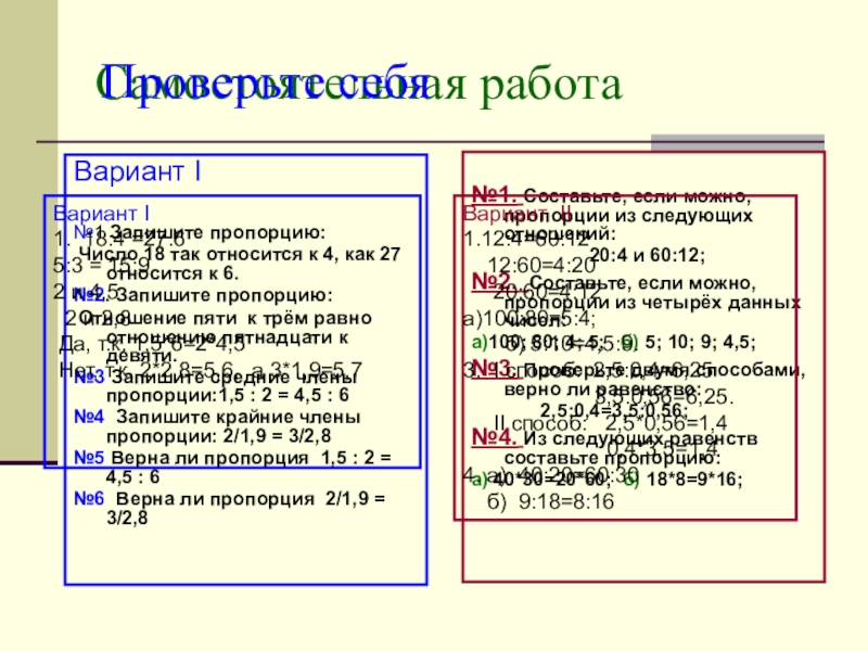 №1. Составьте, если можно, пропорции из следующих отношений: