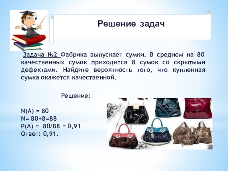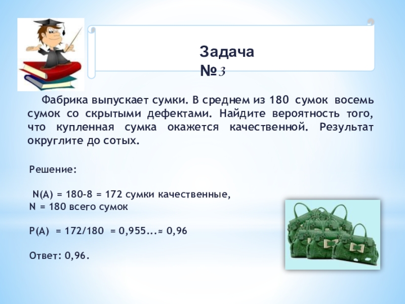 N(A) = 180-8 = 172 сумки качественные,