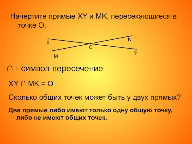 Две прямые либо имеют только одну общую точку, либо не имеют общих точек.