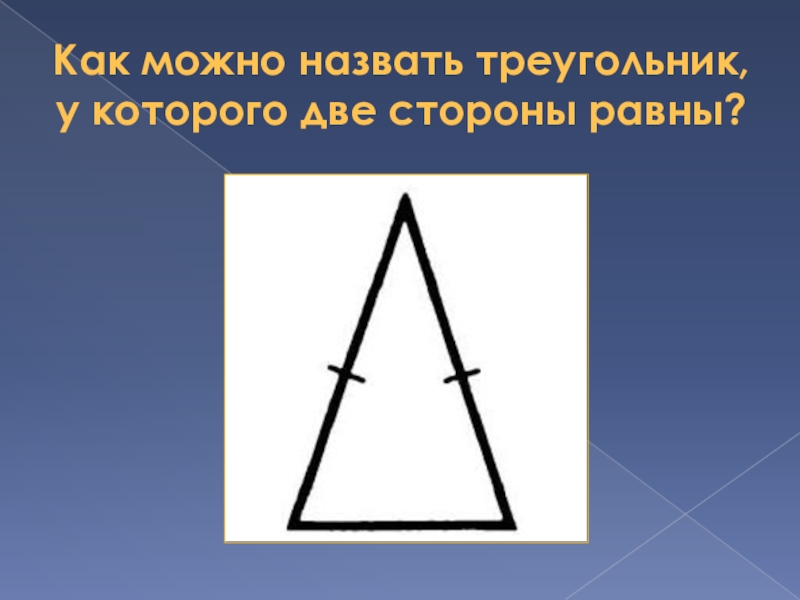 Слайд 7Как можно назвать треугольник, у которого две стороны равны?