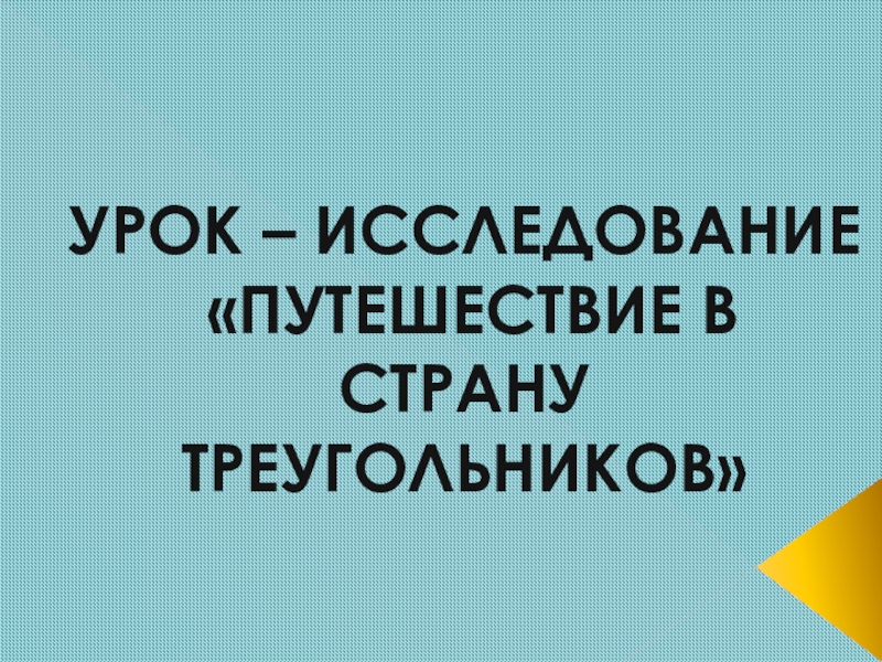 Слайд 1УРОК – ИССЛЕДОВАНИЕ «ПУТЕШЕСТВИЕ В СТРАНУ ТРЕУГОЛЬНИКОВ»