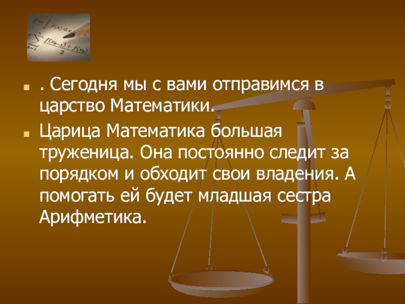 . Сегодня мы с вами отправимся в царство Математики.