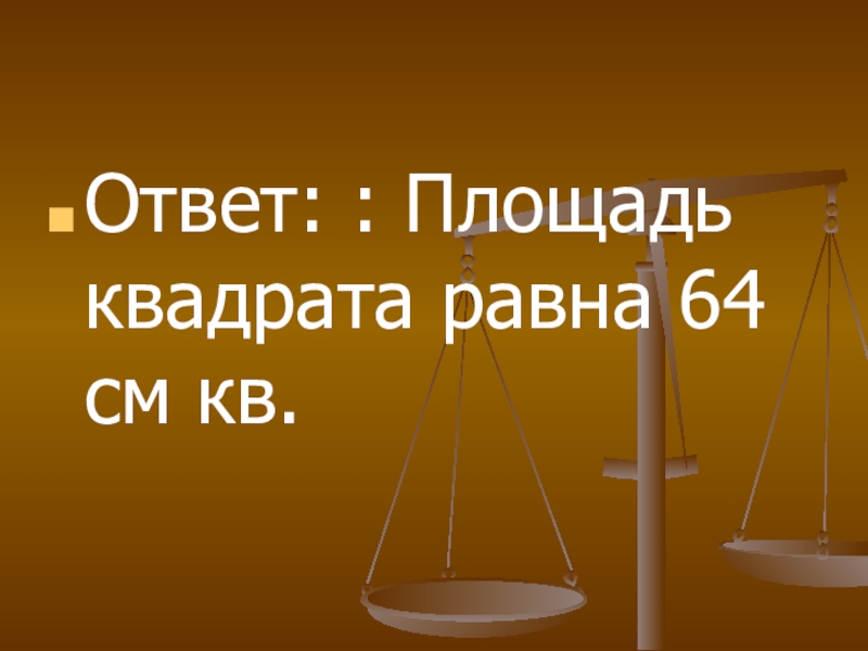 Ответ: : Площадь квадрата равна 64 см кв.