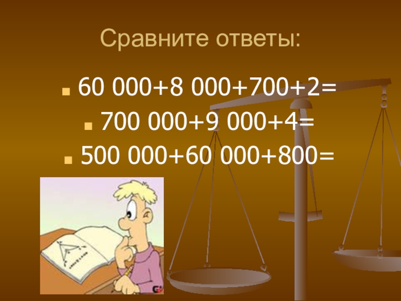 Сравните ответы:60 000+8 000+700+2=700 000+9 000+4=500 000+60 000+800=