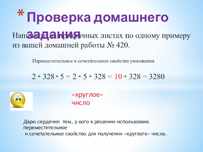Дарю сердечки тем, у кого в решении использовано переместительное