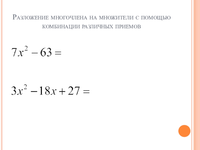 Слайд 1Разложение многочлена на множители с помощью комбинации различных приемов