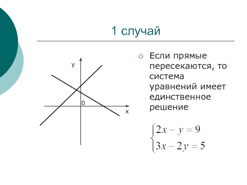 1 случайЕсли прямые пересекаются, то система уравнений имеет единственное решениеух0