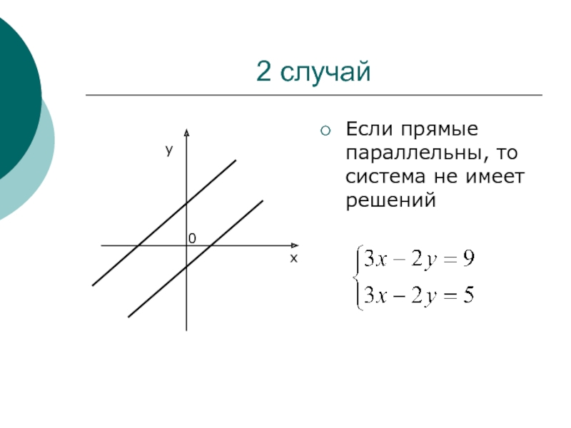 2 случайЕсли прямые параллельны, то система не имеет решенийух0