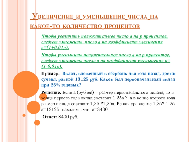 Слайд 15 Увеличение и уменьшение числа на какое-то количество процентов