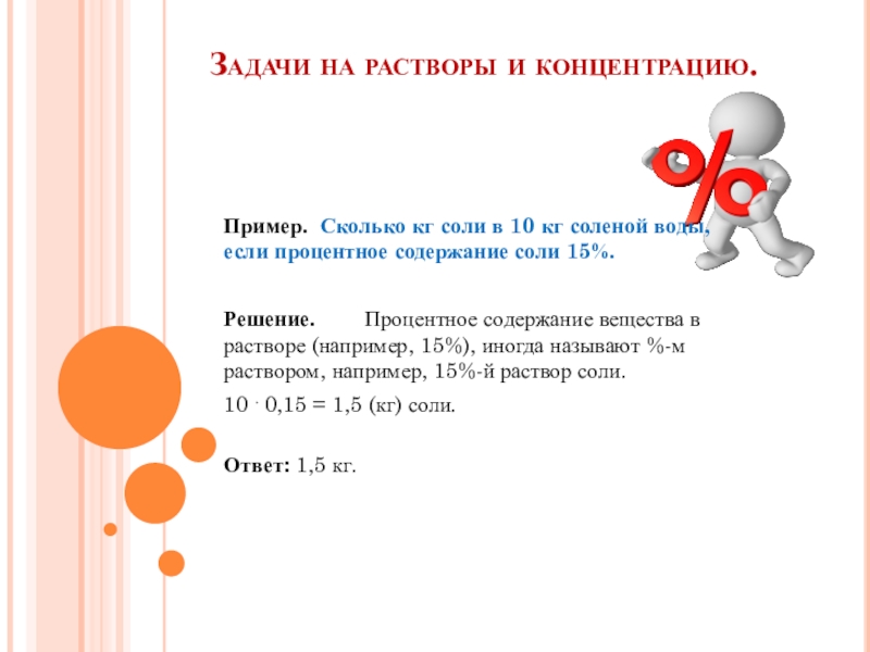 Решение. Процентное содержание вещества в растворе (например, 15%), иногда называют %-м раствором, например, 15%-й раствор соли.