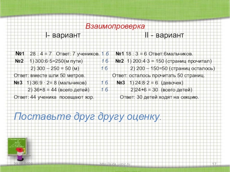 №1 28 : 4 = 7 Ответ: 7 учеников. 1 б №1 18 : 3 = 6 Ответ:6мальчиков.