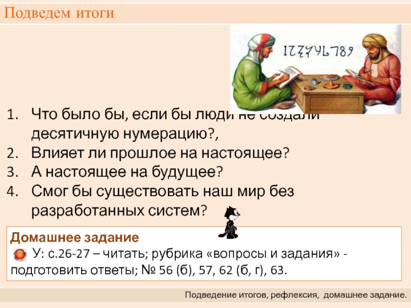 Записывать числа люди научились гораздо позже, чем считать. Раньше всего они стали изображать единицу палочкой, потом двумя палочками число 2, тремя – число 3. А затем люди догадались вместо группы единиц писать один знак.