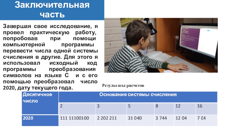 компьютерной программы перевести числа одной системы счисления в другие. Для этого я использовал исходный код программы преобразования символов на языке С и с его помощью преобразовал число 2020, дату текущего года.