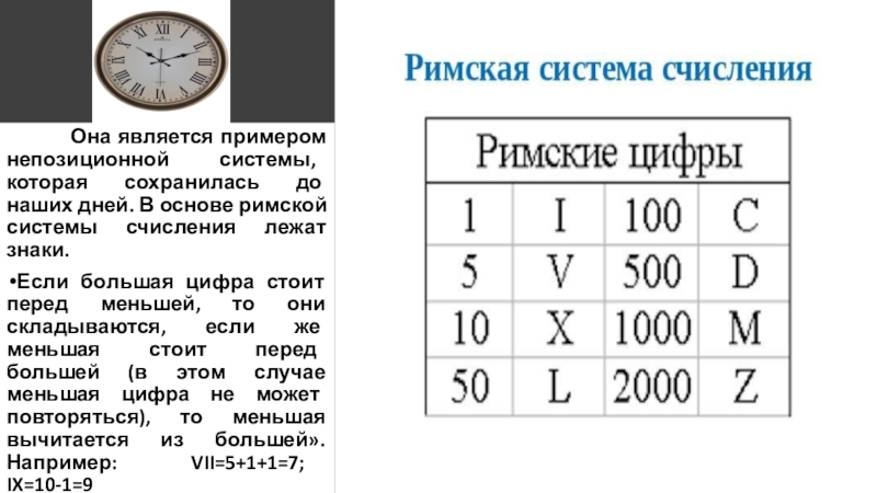 сохранилась до наших дней. В основе римской системы счисления лежат знаки.