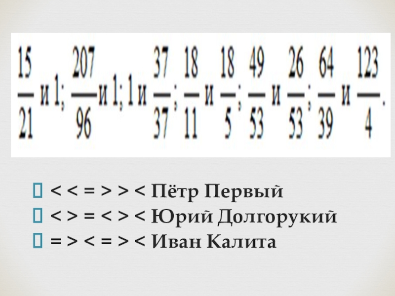 < < = > > < Пётр Первый< > = < > < Юрий Долгорукий= > <